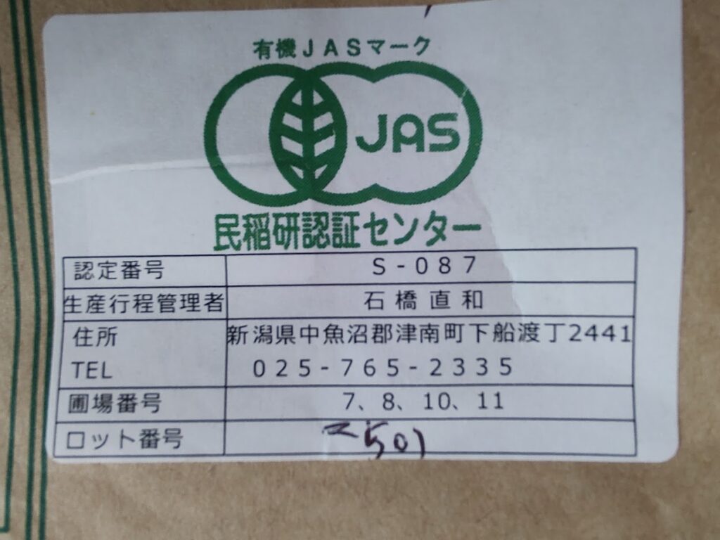 令和7年産・石橋さんの玄米5kg(有機JAS認定米・魚沼コシヒカリ)