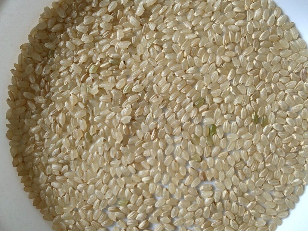 令和7年産玄米の米粒、秋の長雨で、収穫が遅れたようで心配しましたが、大丈夫なようです